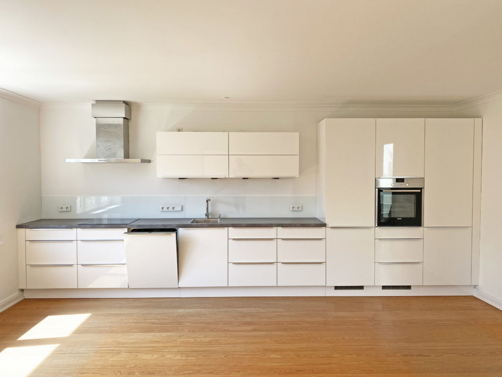 Die 2. Obergeschosswohnung wurde im Jahr 2013 einer Kernsanierung inkl. der Erneuerung des Dachs sowie des Aufbaus der Dachterrasse unterzogen. Insgesamt stehen Ihnen hier zwei ineinander überergehende Räume zur Verfügung, die durch eine originale Schiebetür zu trennen sind und von denen ein Raum die großzügige Wohnküche darstellt. Die in weiß gehaltene Küche der Marke Gerdau wurde mit elektrischen Siemens Geräten ausgestattet.